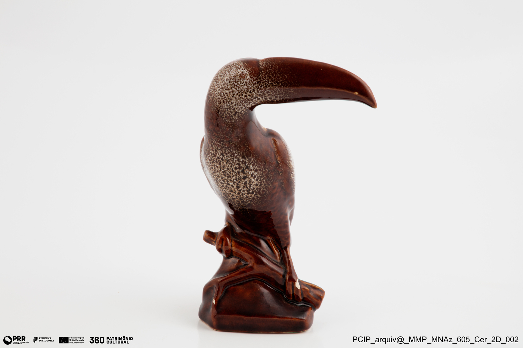 Matéria/Técnica: Faiança moldada; Cronologia: 1950; Autoria: J. Andrade; Dimensões: Altura: 24cm x Largura: 11cm x Profundidade: 16cm.