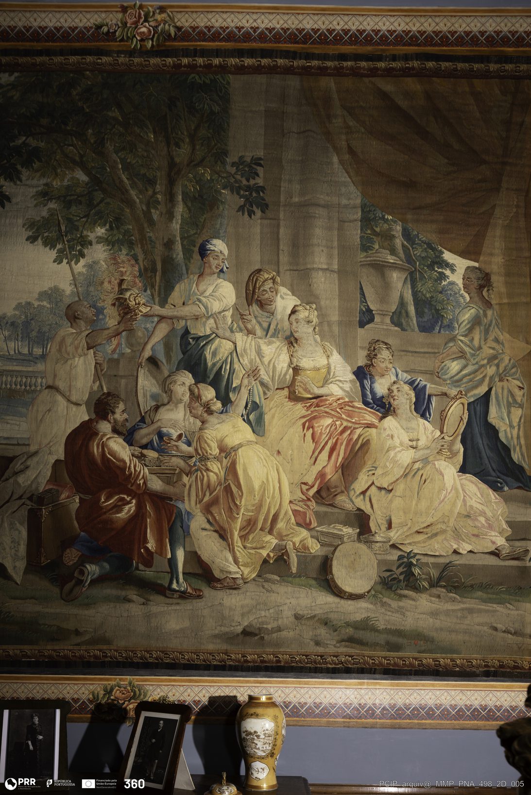 Matéria/Técnica: Tapeçaria de liço; Cronologia: 1726-1761; Autoria: Borght, Jan-Frans van der; Coppens, Augustin; Orley, Jan Van; Dimensões: Altura: 325 cm x Largura: 510 cm.