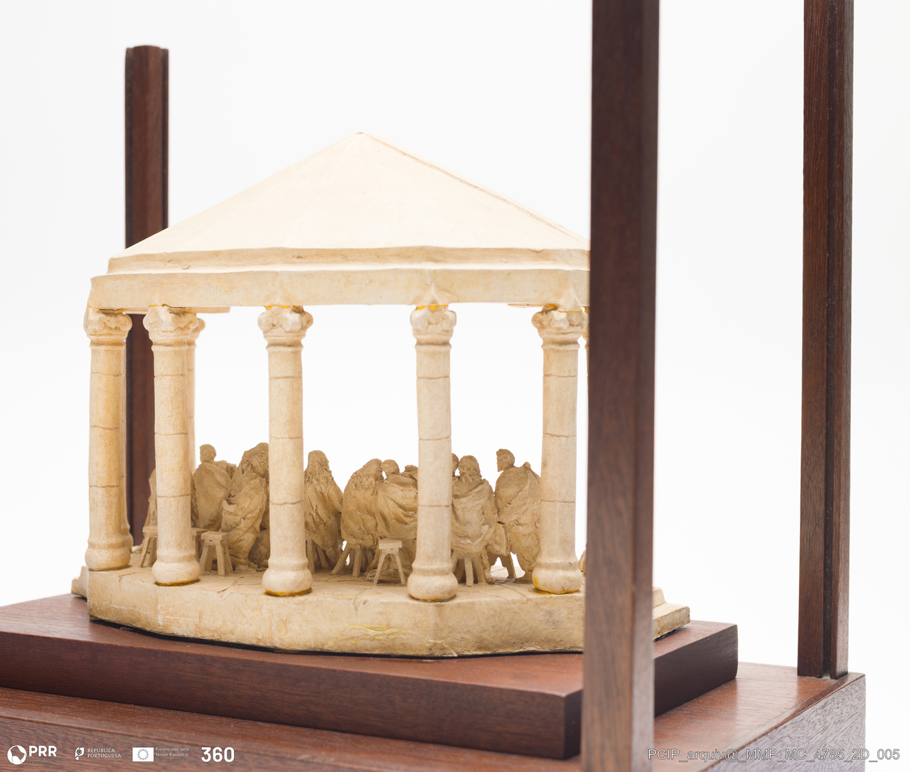 Matéria/Técnica: Barro branco. Escultura de vulto em miniatura; Cronologia: 1920; Autoria: Eduardo Mafra Elias / Fábrica Eduardo Elias, Caldas da Rainha, Portugal; Dimensões (cm): Altura: 20; Largura: 11; Comprimento: 24; Caixa: 30x35x22.
