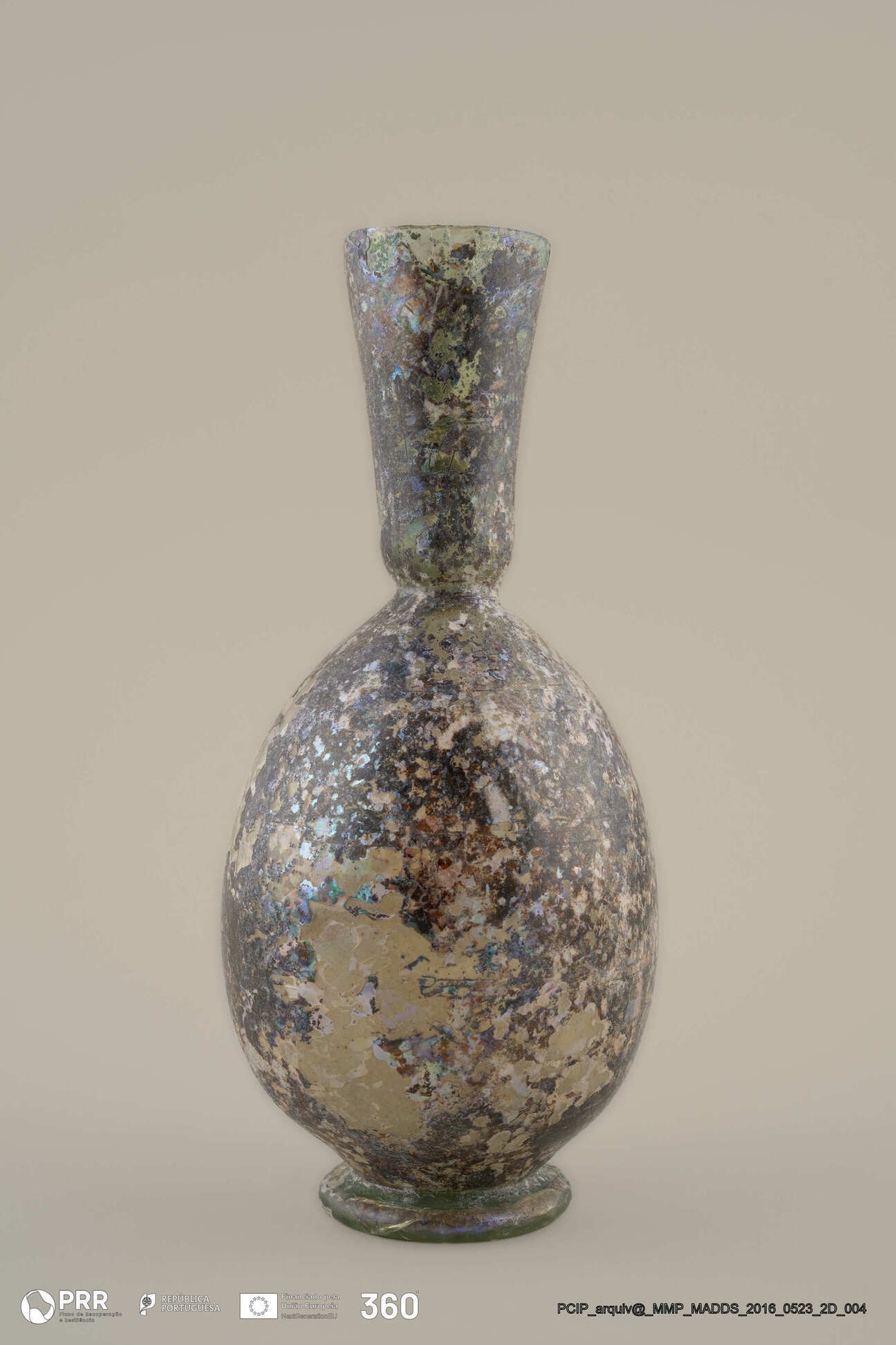 Matéria/Técnica: Vidro; Cronologia: Século IV d.C; Autoria: Desconhecida; Dimensões (cm): 17 x 8 x 8.