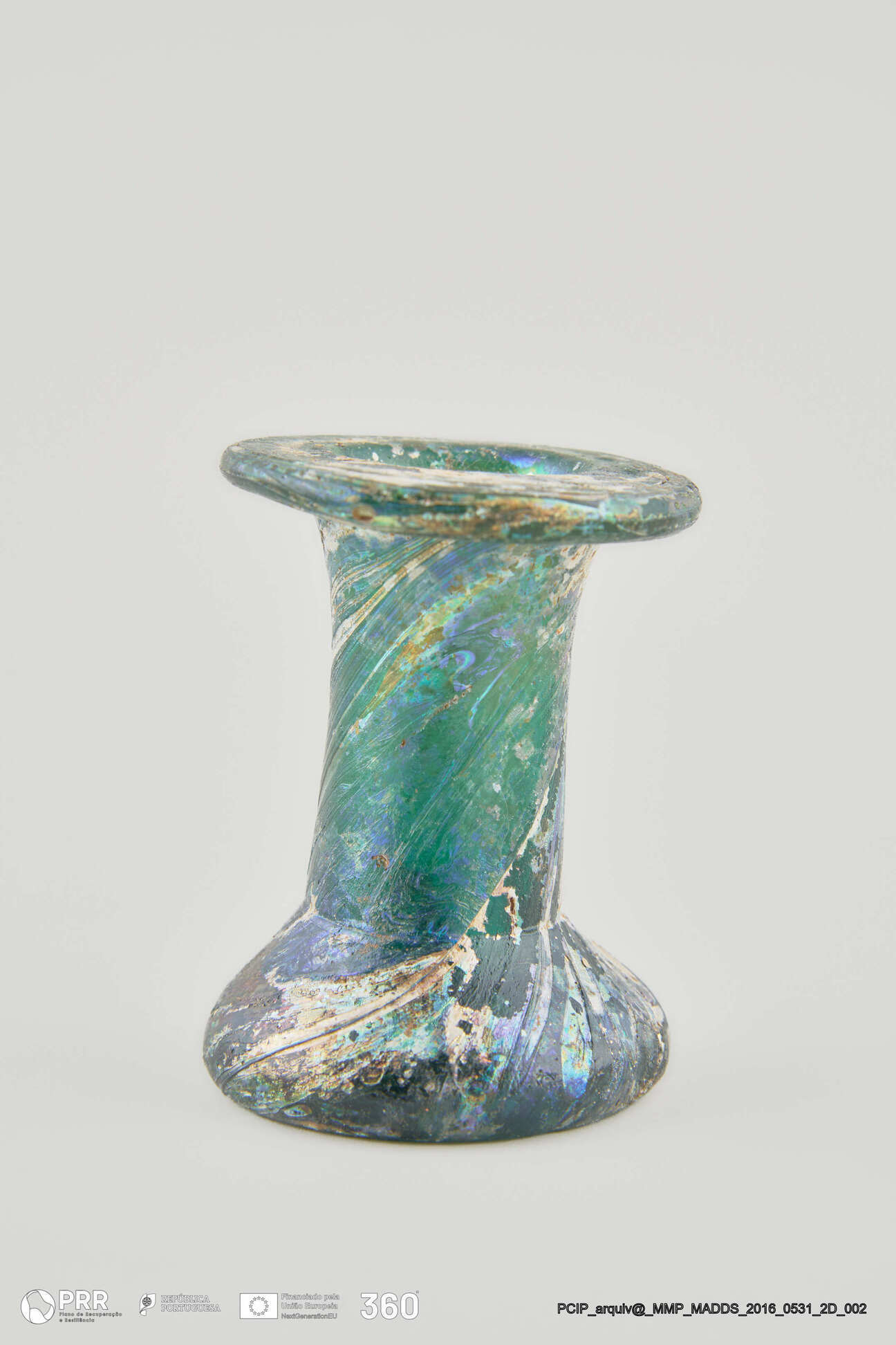 Matéria/Técnica: Vidro; Cronologia: Século II - III d.C; Autoria: Desconhecida; Dimensões (cm): 7 x 5 x 5.