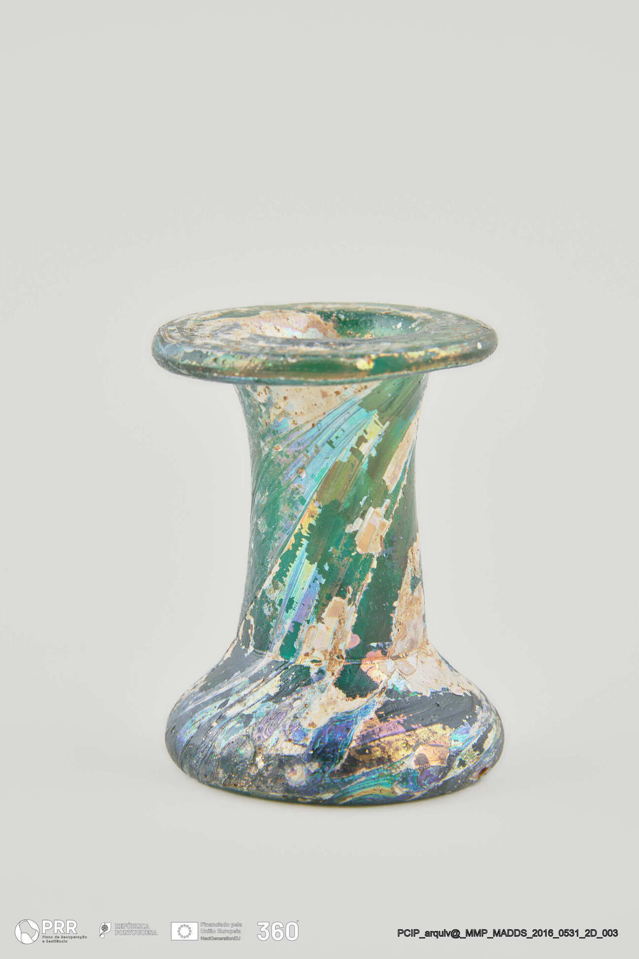 Matéria/Técnica: Vidro; Cronologia: Século II - III d.C; Autoria: Desconhecida; Dimensões (cm): 7 x 5 x 5.