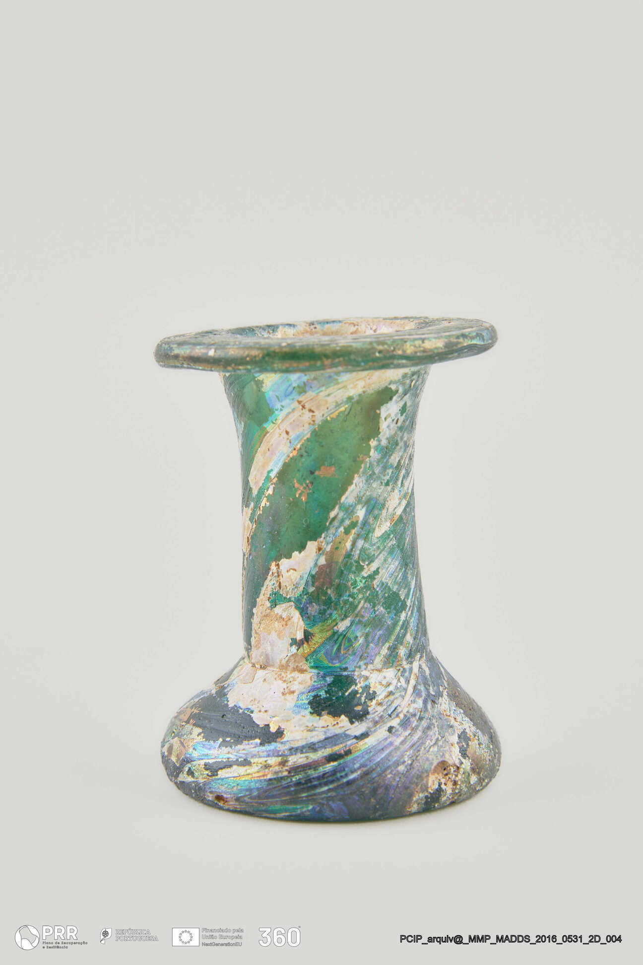Matéria/Técnica: Vidro; Cronologia: Século II - III d.C; Autoria: Desconhecida; Dimensões (cm): 7 x 5 x 5.