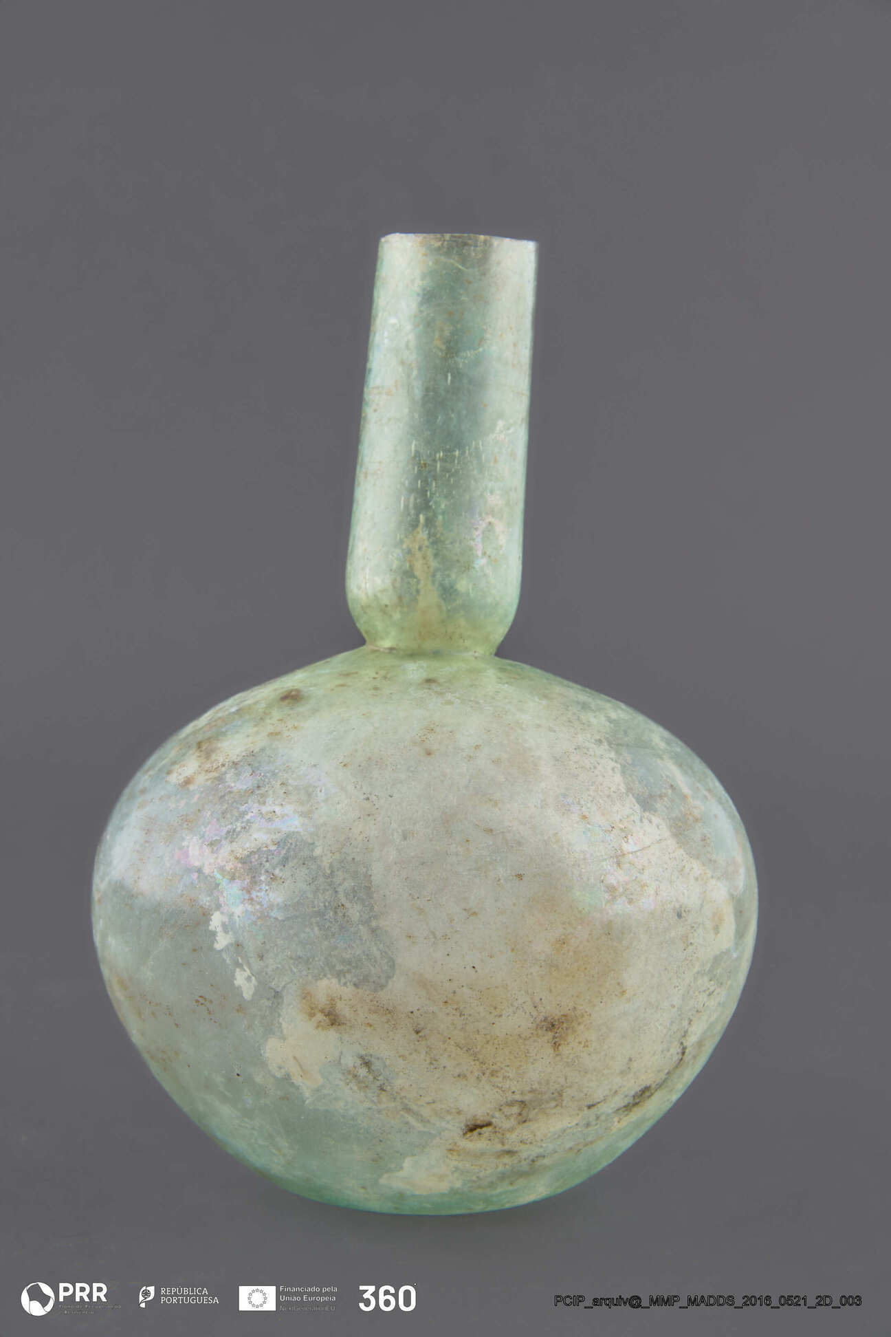 Matéria/Técnica: Vidro; Cronologia: Século III - IV d.C; Autoria: Desconhecida; Dimensões (cm): 17 x 12 x 12.