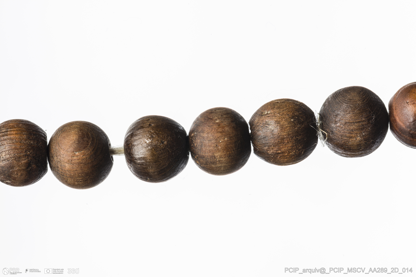 Matéria/Técnica: Madeira; Cronologia: Século XVI-Século XVII; Autoria: Desconhecida; Dimensões: Comprimento total: 140mm; Diâmetro uma conta do AA289: 11,5mm; Diâmetro uma conta AA290: 14,5mm.