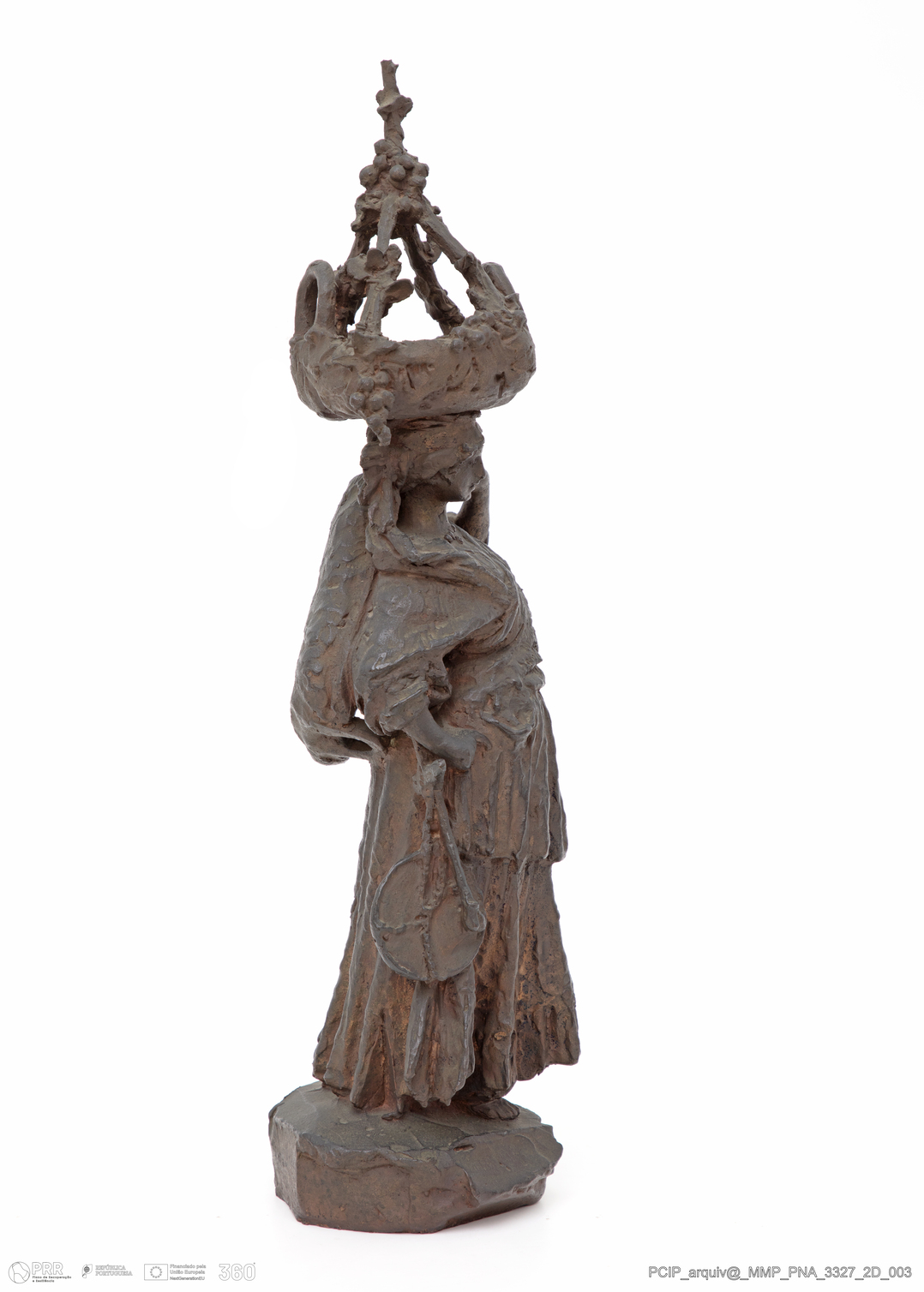 Matéria/Técnica: Bronze; Cronologia: Século XIX; Autoria: Desconhecida; Dimensões (cm): Altura: 44; Largura: 26; Profundidade: 24.