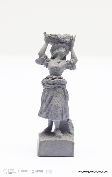 Matéria/Técnica: Barro cinzento modelado. Monocozedura; Cronologia: 1901; Autoria: Francisco Elias / Caldas da Rainha, Portugal; Dimensões (cm): Altura: 5; Largura: 2,5; Comprimento: 2.