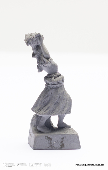 Matéria/Técnica: Barro cinzento modelado. Monocozedura; Cronologia: 1901; Autoria: Francisco Elias / Caldas da Rainha, Portugal; Dimensões (cm): Altura: 5; Largura: 2,5; Comprimento: 2.
