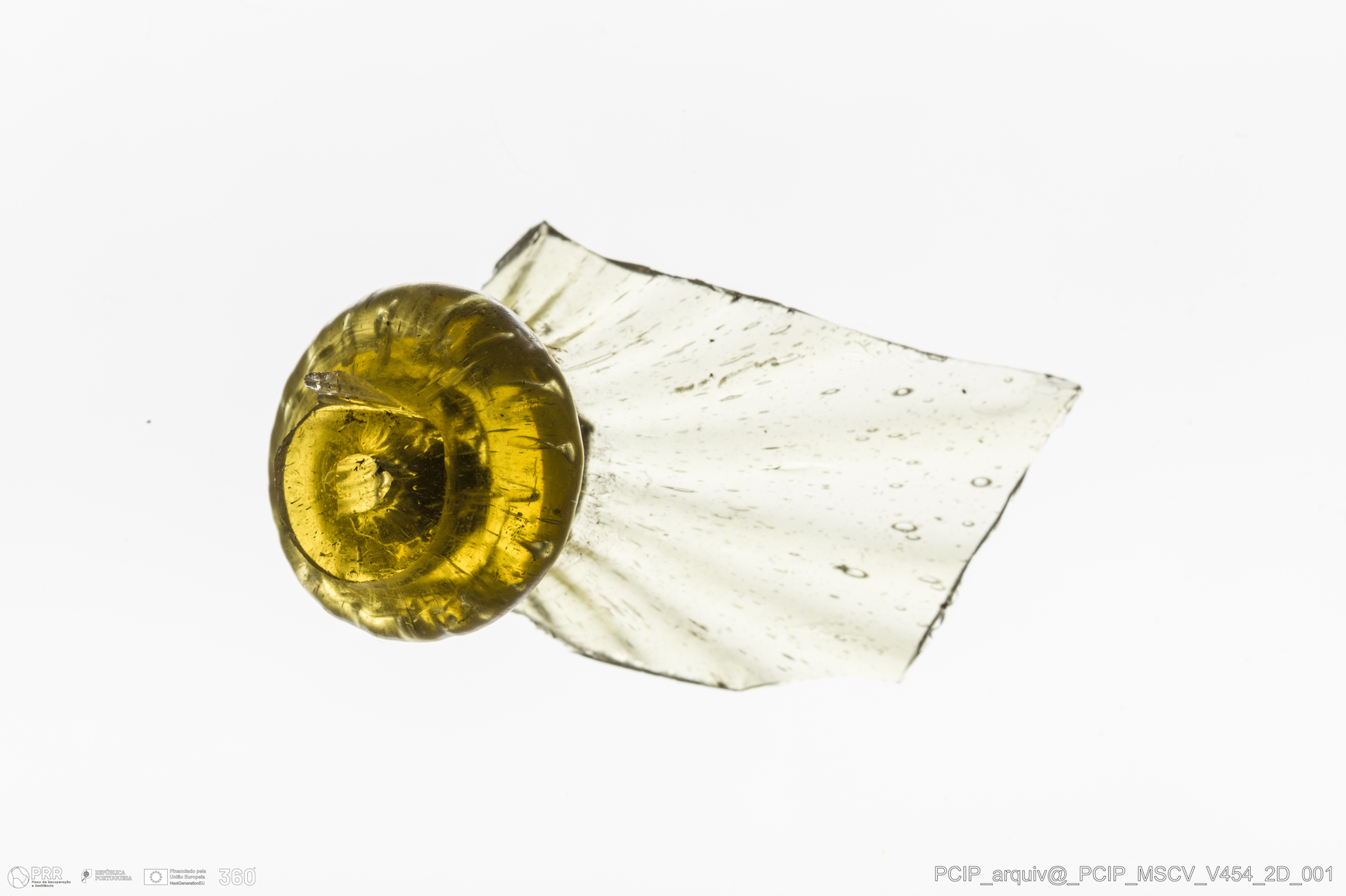 Matéria/Técnica: Vidro; Cronologia: Século XVII; Autoria: Desconhecida; Dimensões: Diâmetro: 23mm; Altura: 45mm.