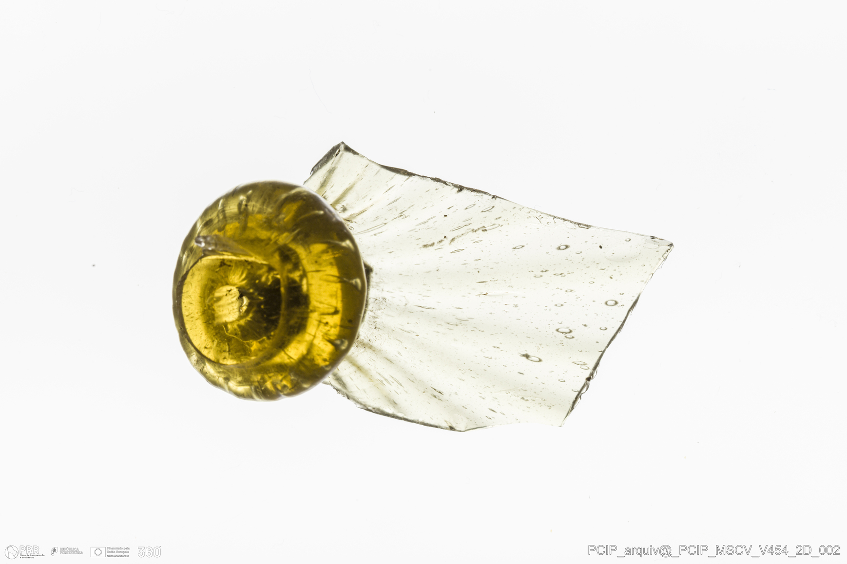 Matéria/Técnica: Vidro; Cronologia: Século XVII; Autoria: Desconhecida; Dimensões: Diâmetro: 23mm; Altura: 45mm.