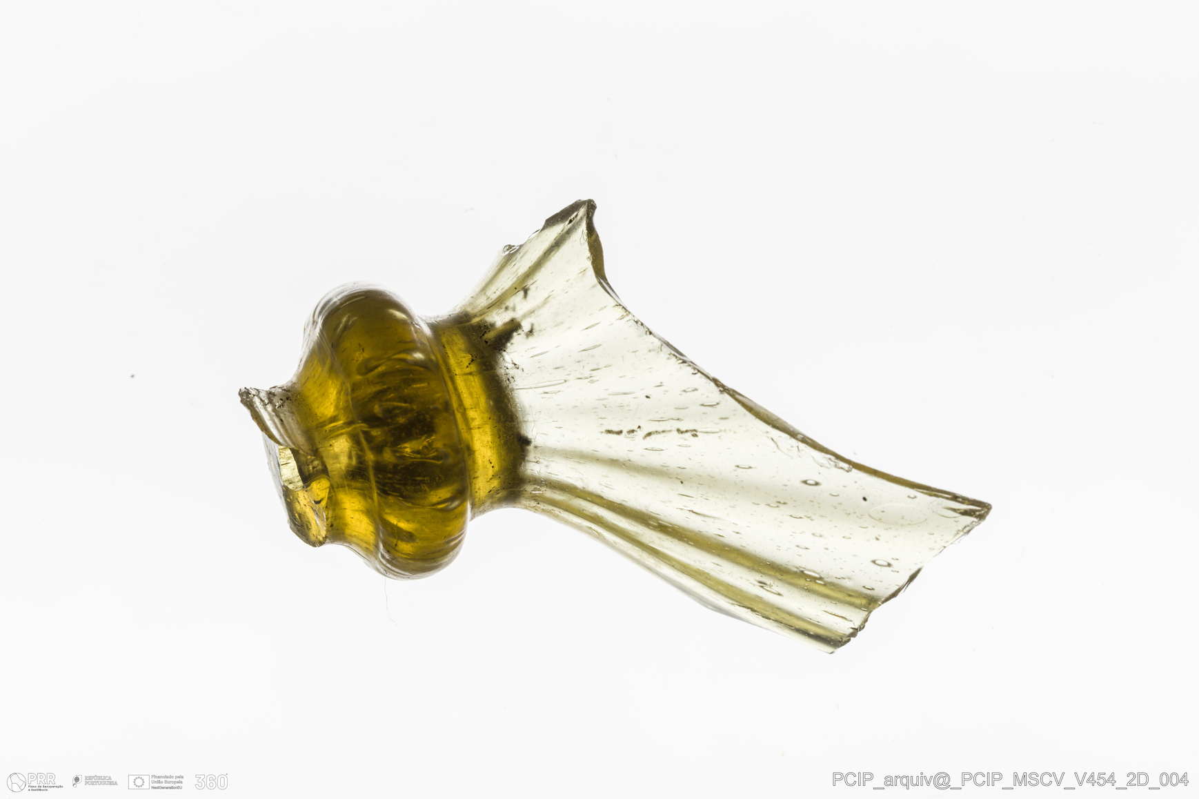 Matéria/Técnica: Vidro; Cronologia: Século XVII; Autoria: Desconhecida; Dimensões: Diâmetro: 23mm; Altura: 45mm.