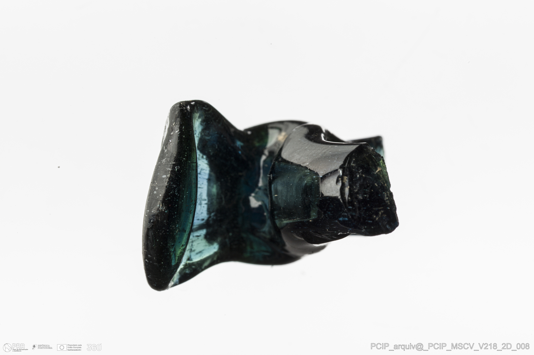 Matéria/Técnica: Vidro; Cronologia: Século XVII; Autoria: Desconhecida; Dimensões: Comprimento: 30mm; Largura: 28mm.