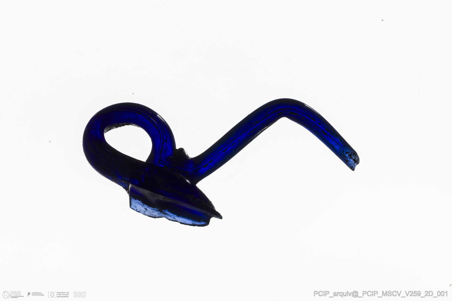 Matéria/Técnica: Vidro; Cronologia: Século XVII; Autoria: Desconhecida; Dimensões: Comprimento: 42mm; Largura: 26mm.