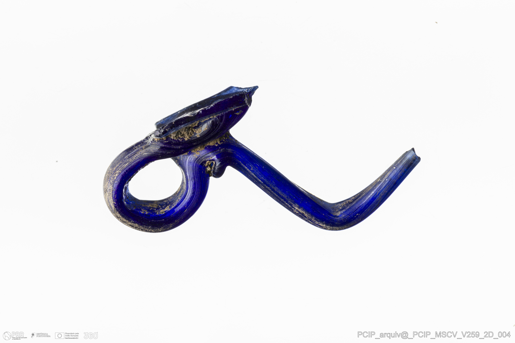 Matéria/Técnica: Vidro; Cronologia: Século XVII; Autoria: Desconhecida; Dimensões: Comprimento: 42mm; Largura: 26mm.