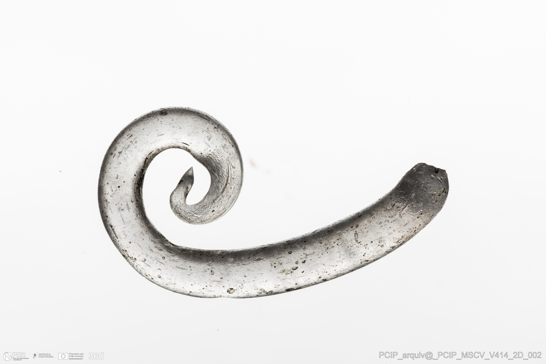 Matéria/Técnica: Vidro; Cronologia: Século XVII; Autoria: Desconhecida; Dimensões: Largura: 28mm; Altura: 51mm.
