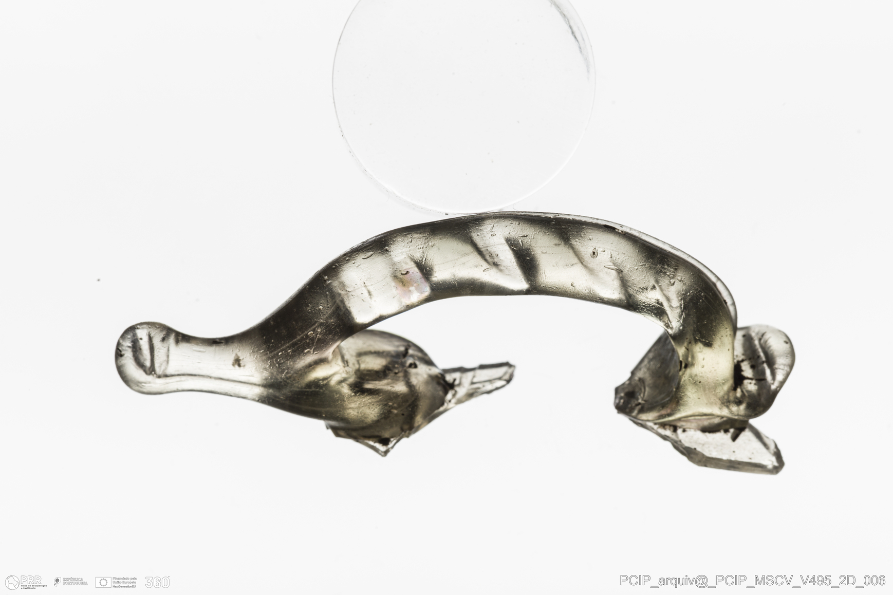 Matéria/Técnica: Vidro; Cronologia: Século XVII; Autoria: Desconhecida; Dimensões: Largura: 22mm; Altura: 55mm.
