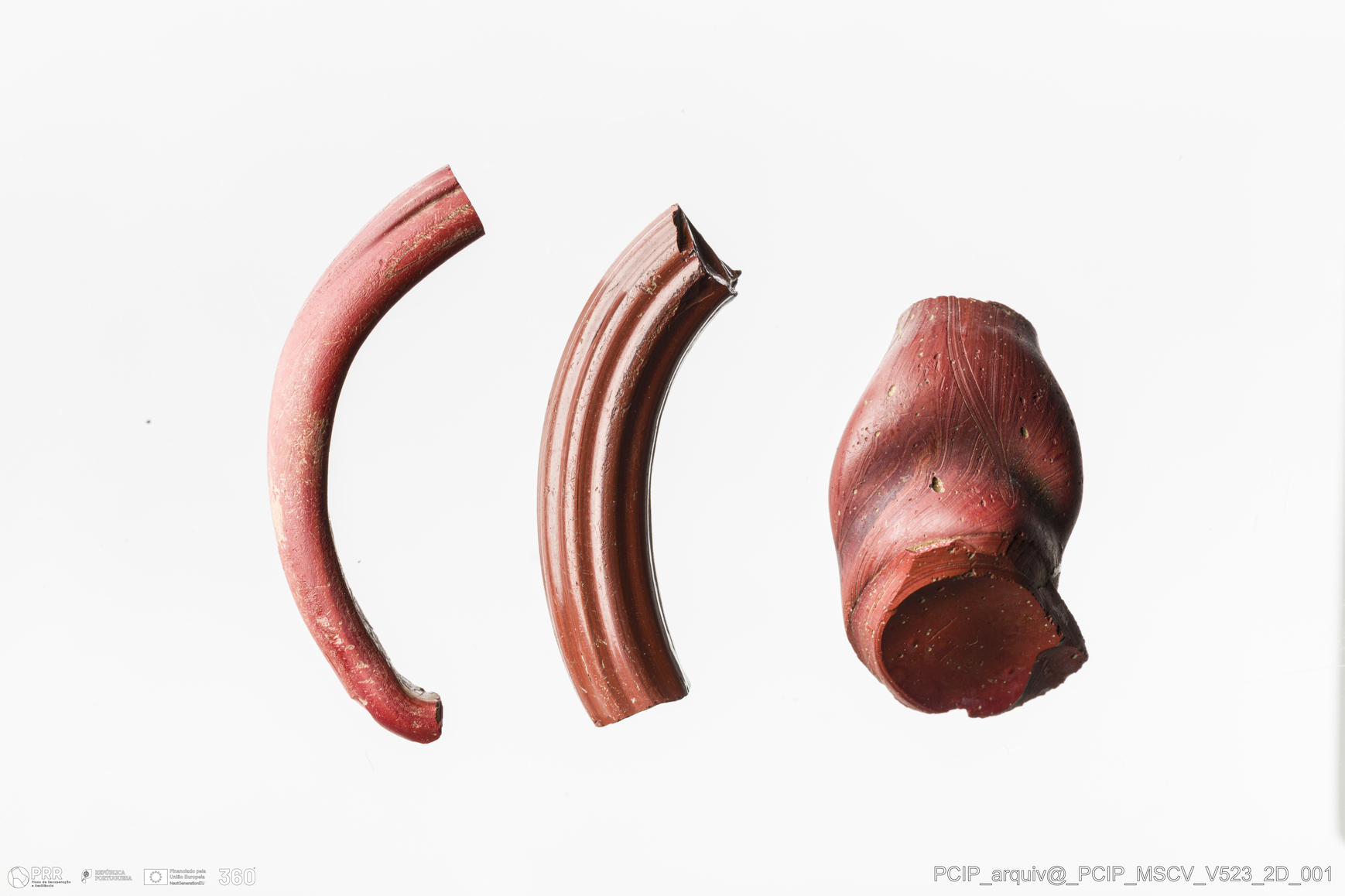 Matéria/Técnica: Vidro; Cronologia: Século XVII; Autoria: Desconhecida; Dimensões: Comprimento: 18mm; Largura: 15mm.