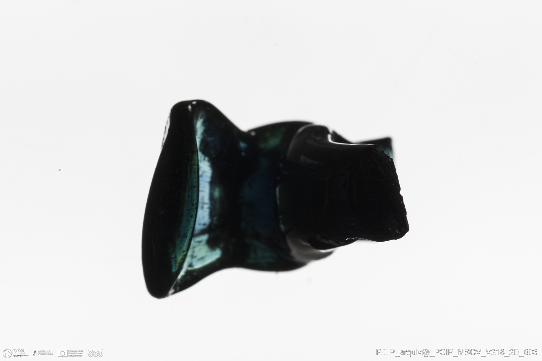 Matéria/Técnica: Vidro; Cronologia: Século XVII; Autoria: Desconhecida; Dimensões: Comprimento: 30mm; Largura: 28mm.