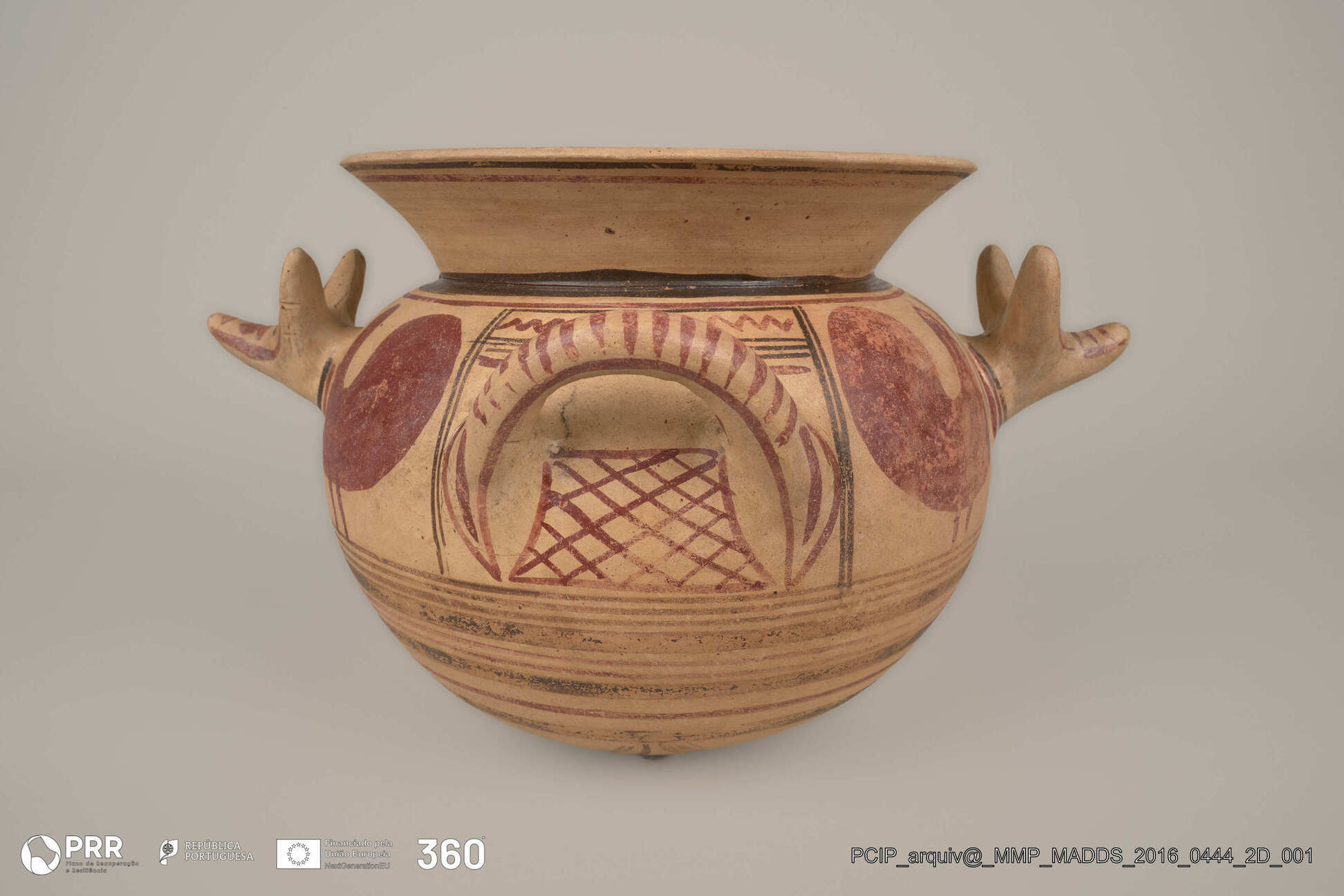 Matéria/Técnica: Cerâmica; Cronologia: 350 - 250 a.C; Autoria: Desconhecida; Dimensões (cm): 22 x 36 x 30.