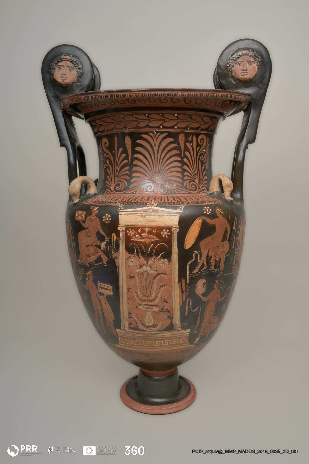 Matéria/Técnica: Cerâmica; Cronologia: 330 - 320 a.C; Autoria: Desconhecida; Dimensões (cm): 89 x 53 x 53.