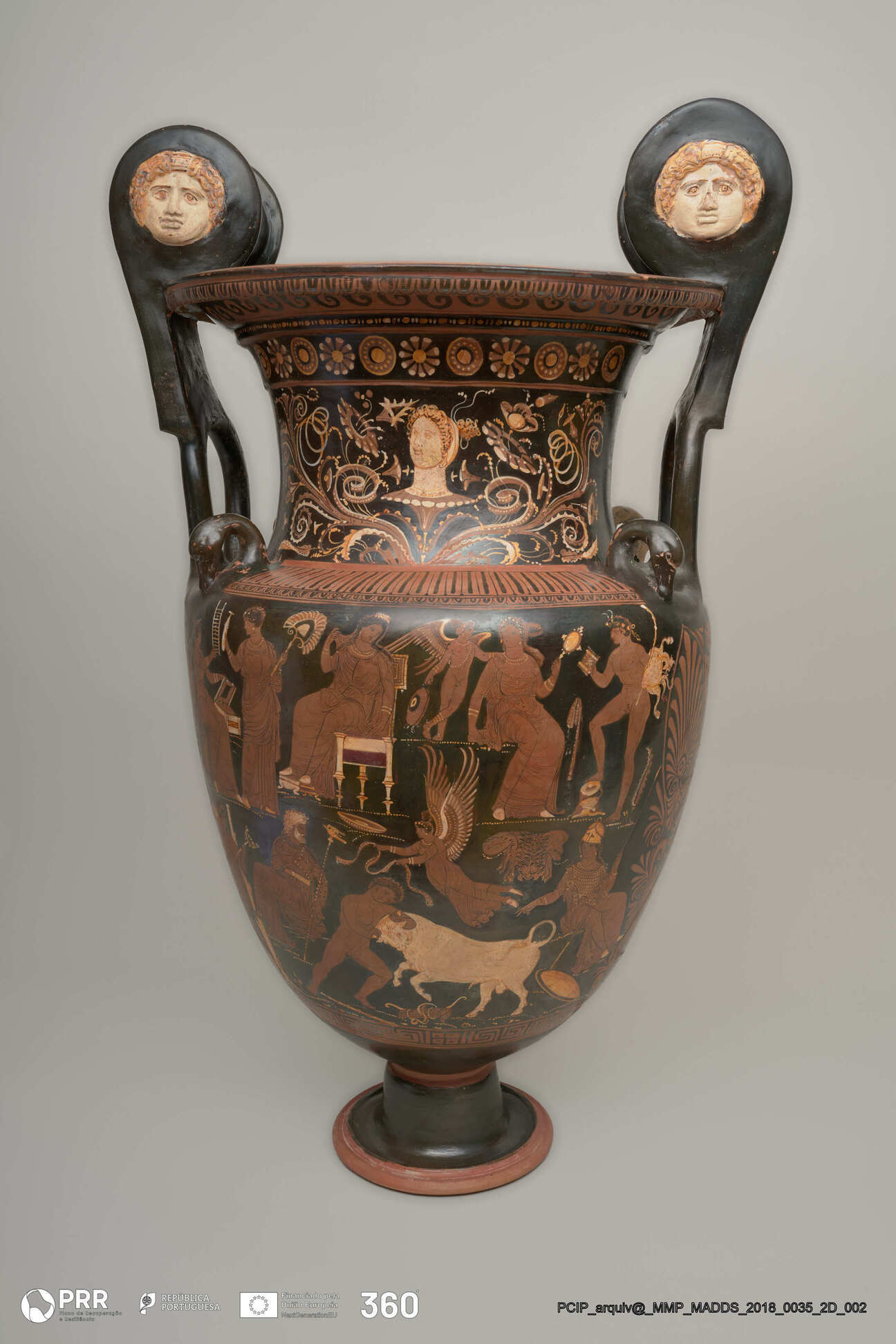 Matéria/Técnica: Cerâmica; Cronologia: 330 - 320 a.C; Autoria: Desconhecida; Dimensões (cm): 89 x 53 x 53.
