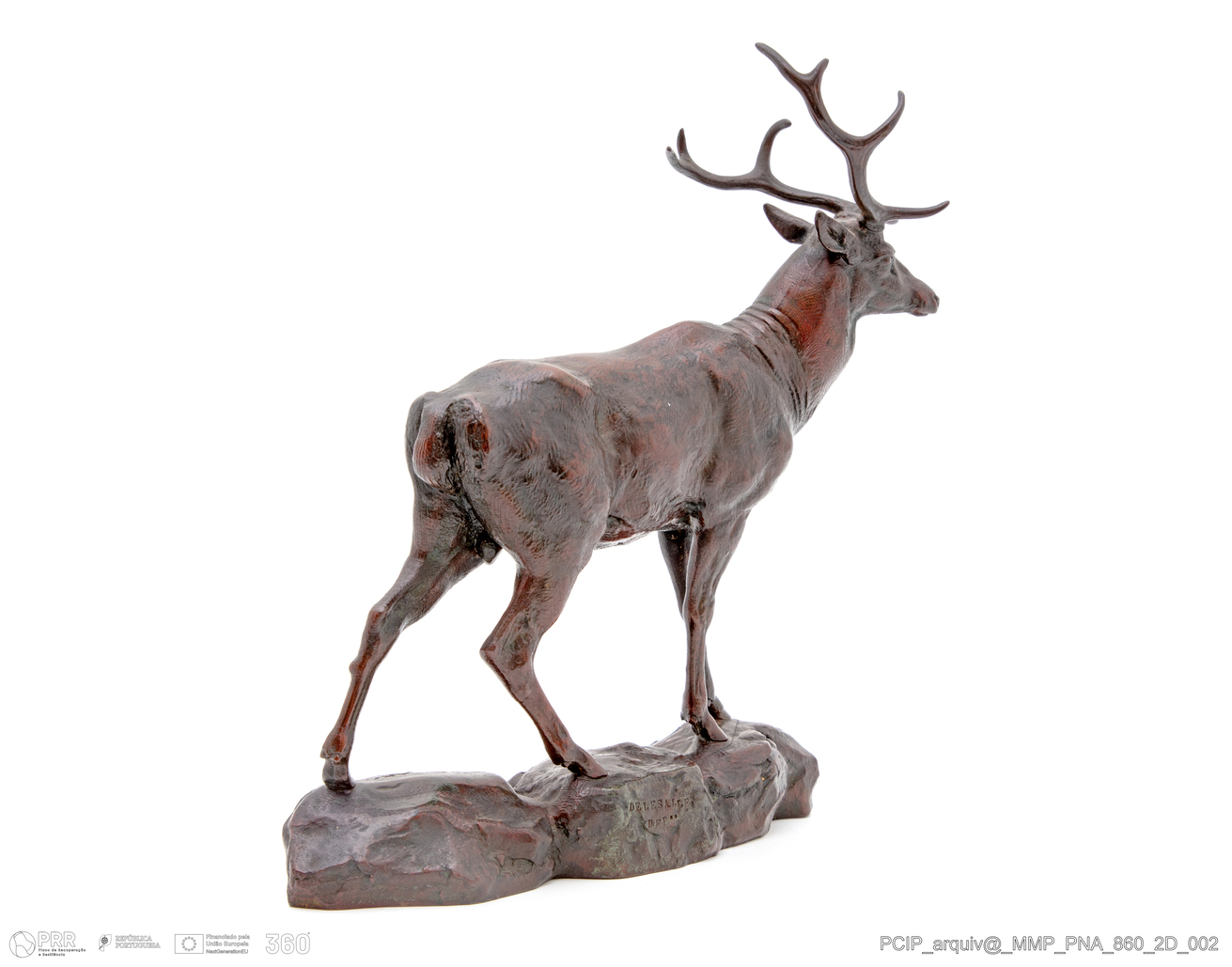Matéria/Técnica: Desconhecida; Cronologia: Século XIX; Autoria: Barye, Antoine-Louis (1795-1875); Dimensões (cm): Altura: 23,6 cm; Largura: 21,5 cm; Profundidade: 56 cm.