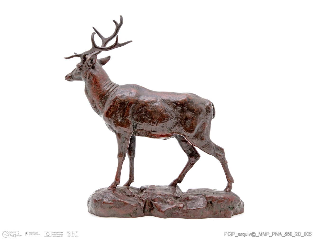 Matéria/Técnica: Desconhecida; Cronologia: Século XIX; Autoria: Barye, Antoine-Louis (1795-1875); Dimensões (cm): Altura: 23,6 cm; Largura: 21,5 cm; Profundidade: 56 cm.