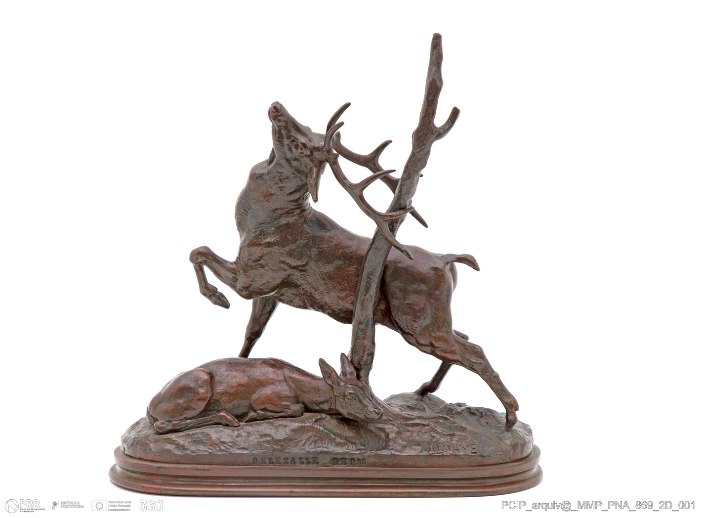 Matéria/Técnica: Desconhecida; Cronologia: Século XIX; Autoria: Barye, Antoine-Louis (1795-1875); Dimensões (cm): Altura: 22,5; Largura: 21,9; Profundidade: 9,3.