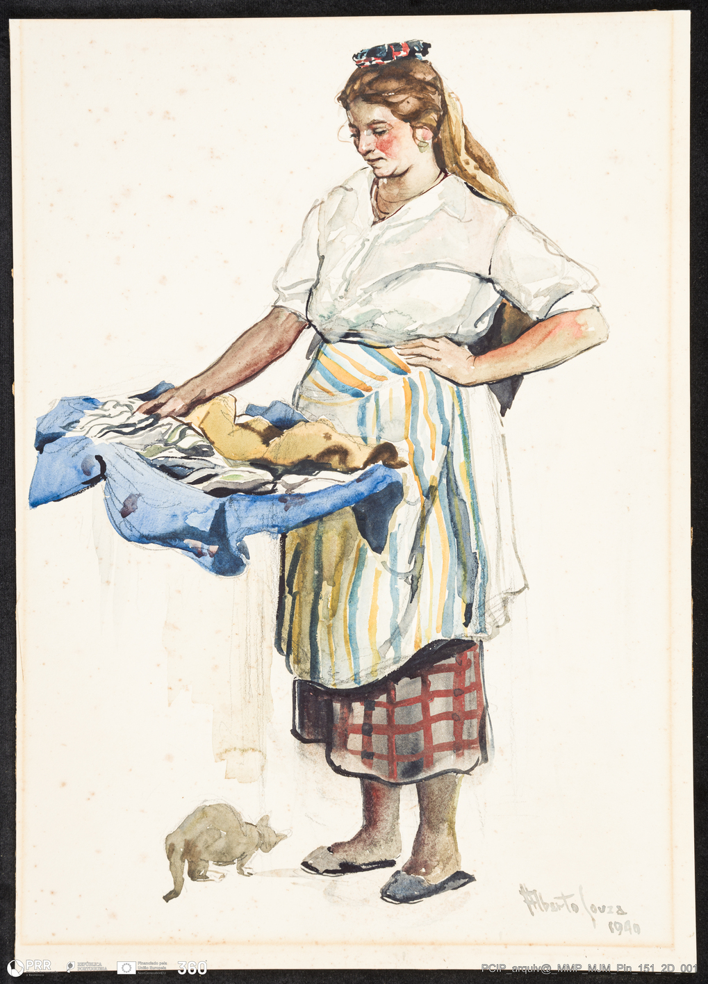 Matéria/Técnica: Aguarela; Cronologia: 1940; Autoria: Alberto Sousa (1880-1961); Dimensões: 37 x 26 cm.