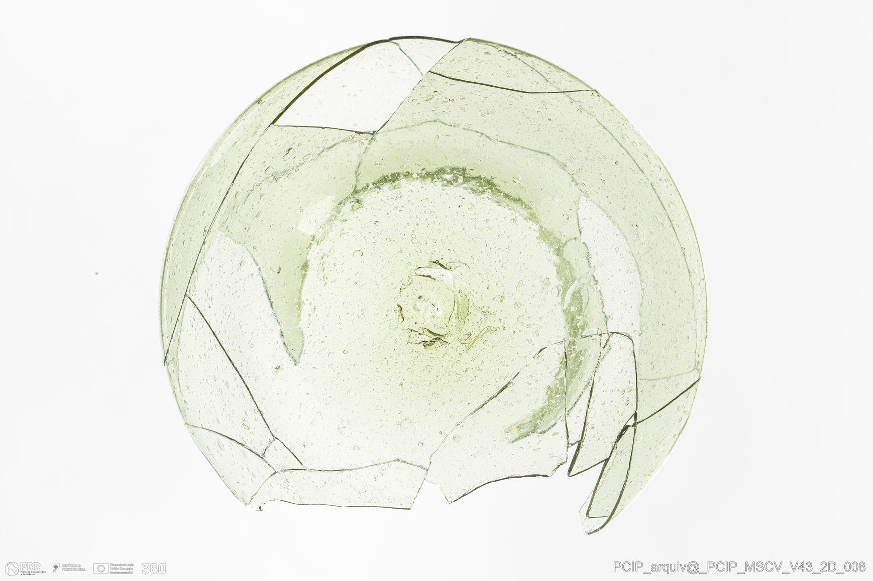 Matéria/Técnica: Vidro; Cronologia: Século XVII; Autoria: Desconhecida; Dimensões: Diâmetro bordo: 50mm; Diâmetro base: 55mm; Altura: 69mm.