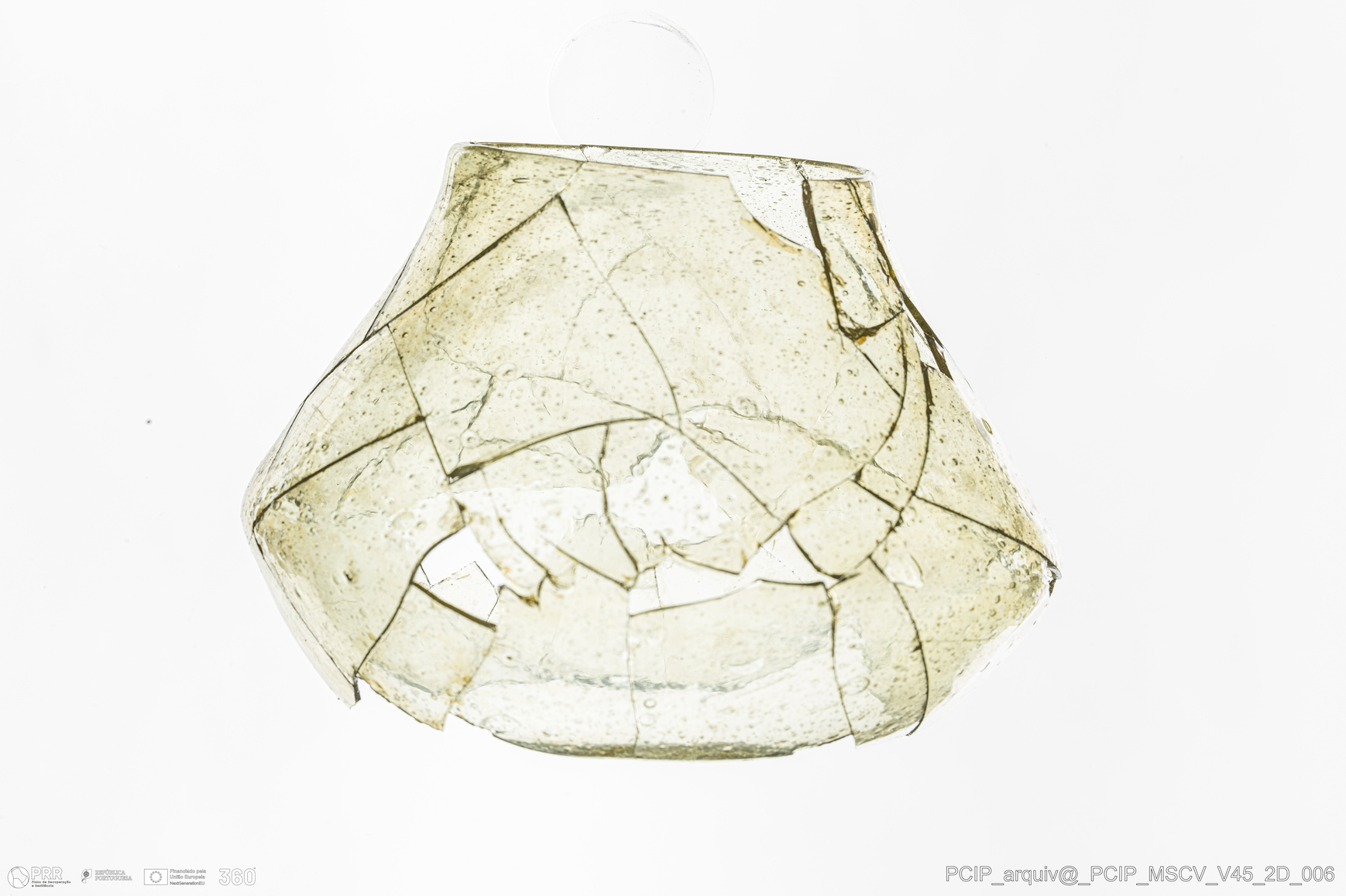 Matéria/Técnica: Vidro; Cronologia: Século XVII; Autoria: Desconhecida; Dimensões: Altura: 70mm; Diâmetro do bordo: 49mm.