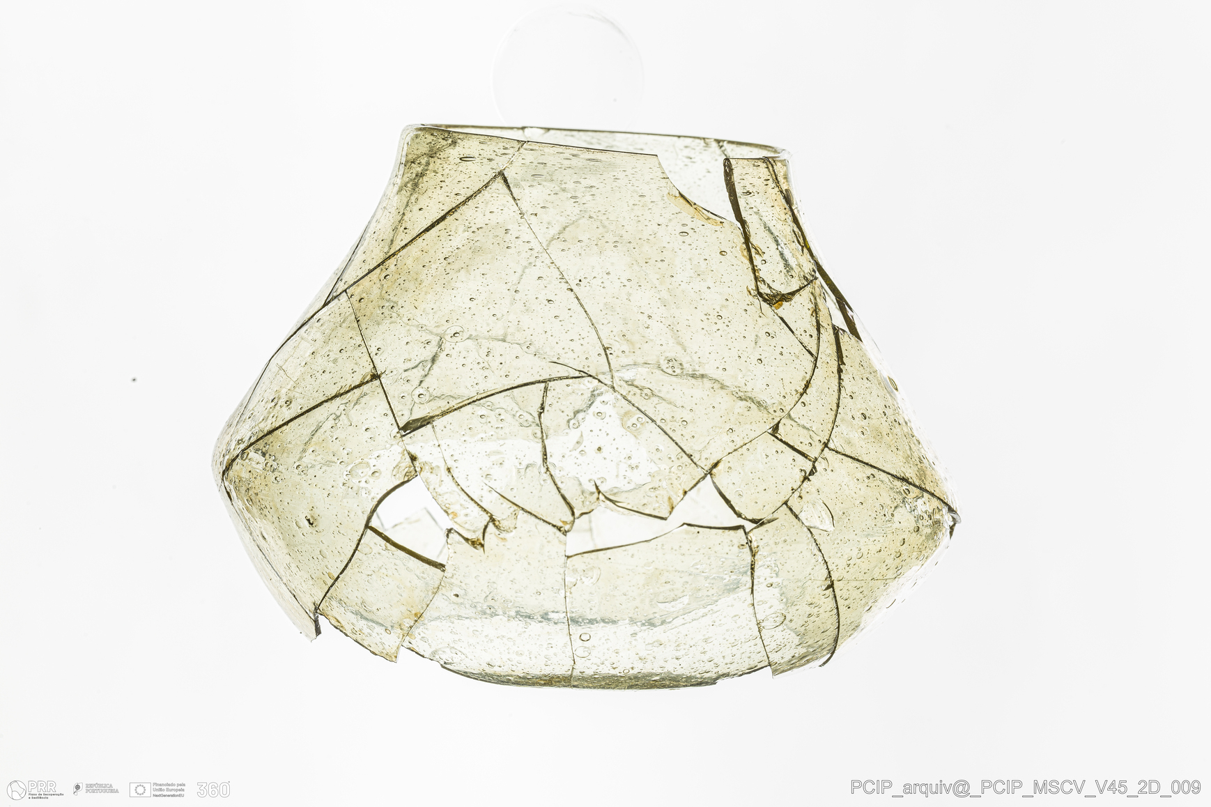 Matéria/Técnica: Vidro; Cronologia: Século XVII; Autoria: Desconhecida; Dimensões: Altura: 70mm; Diâmetro do bordo: 49mm.