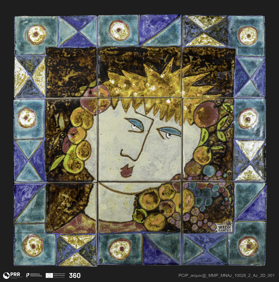 Matéria/Técnica: Cerâmica relevada, policromada, vidrada e esmaltada sobre chacota manual.; Cronologia: 1987-1989; Autoria: Cortez, Teresa; Dimensões: Altura: 56 cm x Largura: 56 cm.
