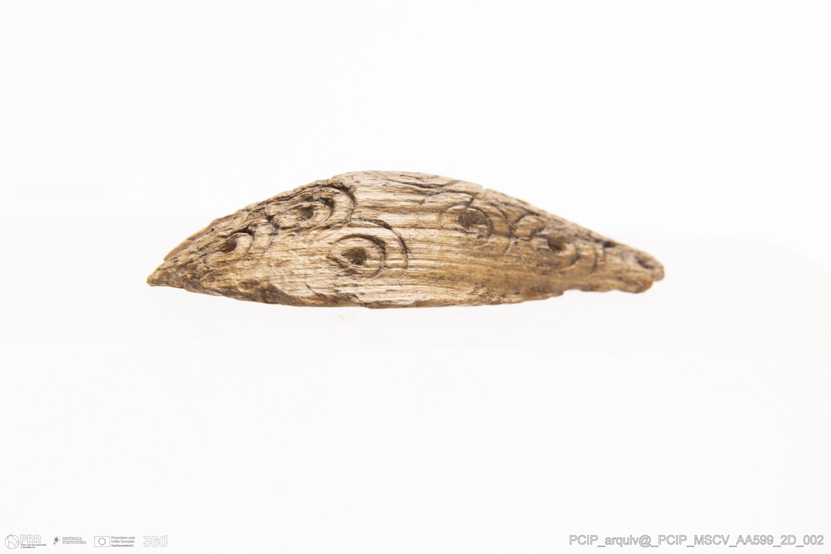 Matéria/Técnica: Madeira; Cronologia: Século XVI-XVII; Autoria: Desconhecida; Dimensões: Largura: 29mm; Altura: 53mm; Espessura: 11mm.