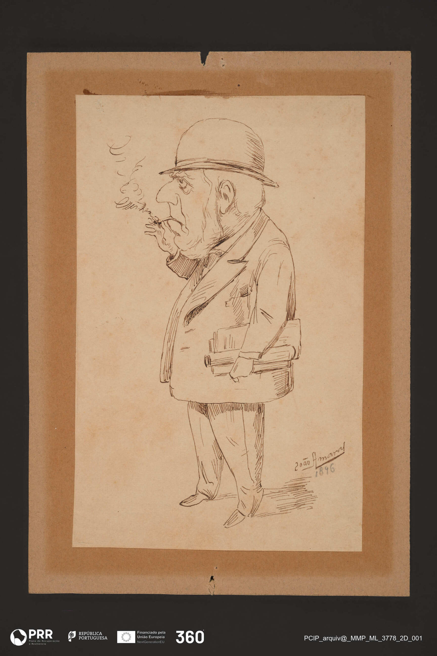Matéria/Técnica: Desenho à pena; Cronologia: 1896; Autoria: Amaral, João (1874 - 1955); Dimensões (cm): Altura: 17,5 x Largura: 11,2.