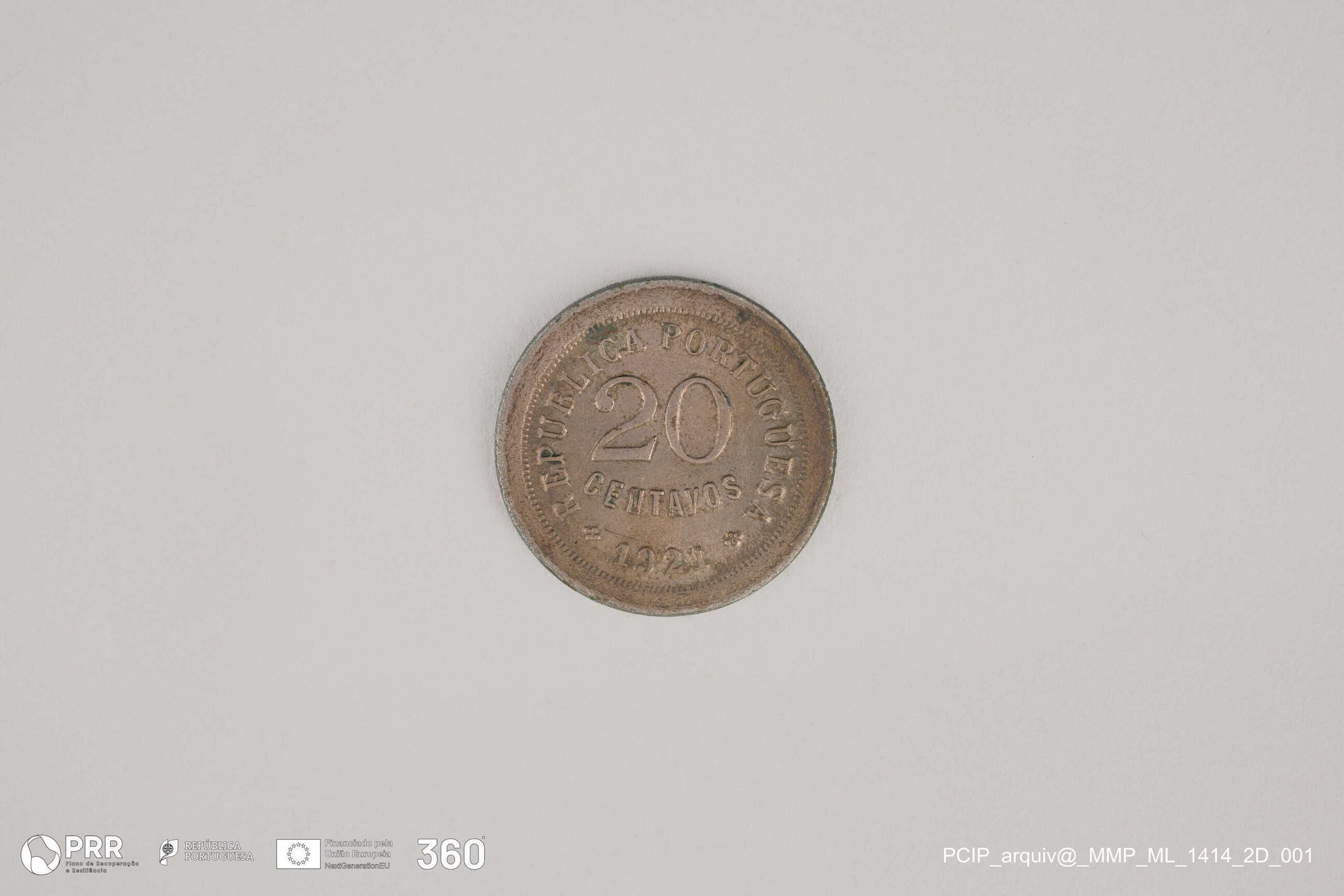 Matéria/Técnica: Cunhagem; Cronologia: 1921; Autoria: Desconhecida; Dimensões (cm): Diâmetro: 2,3.