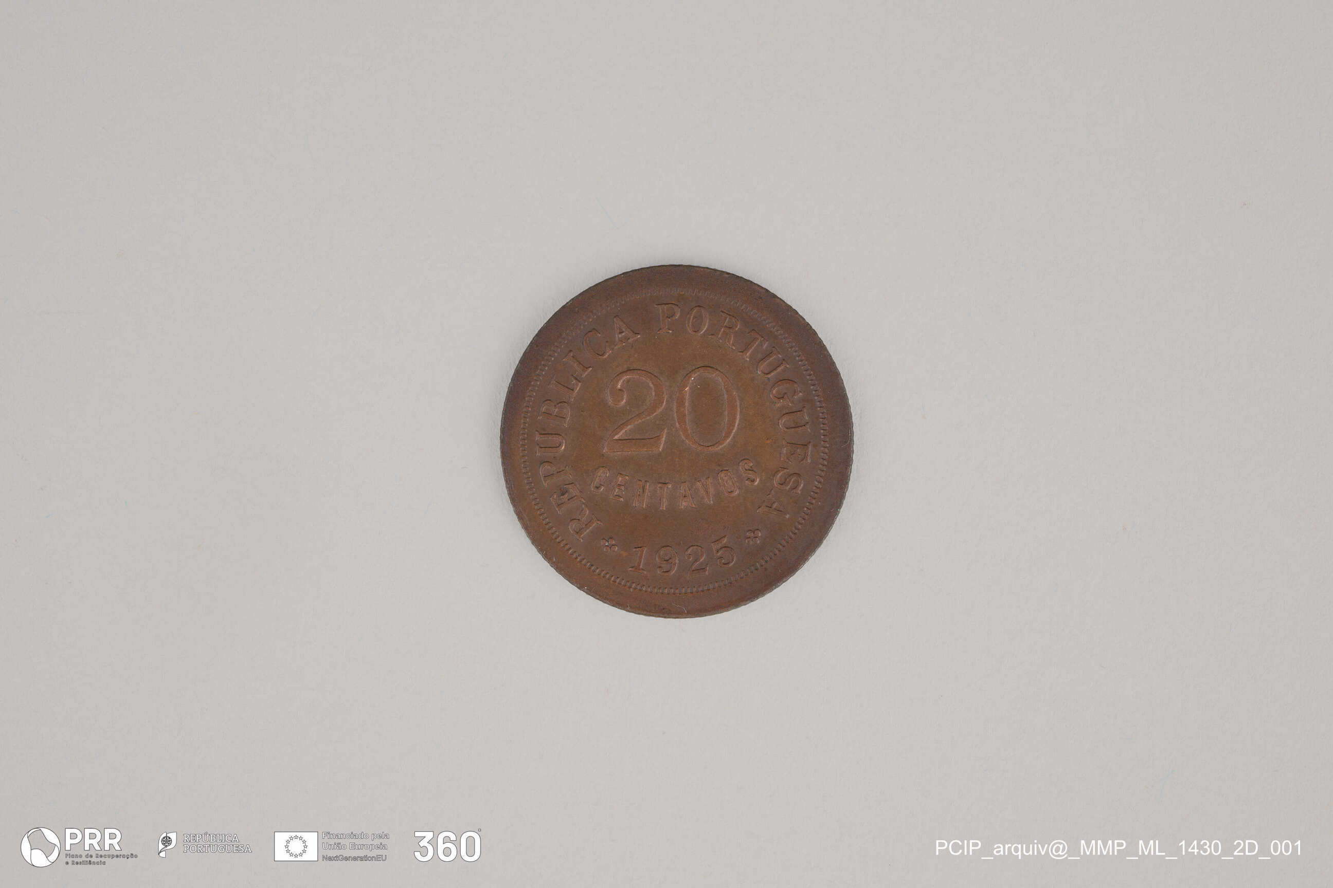 Matéria/Técnica: Cunhagem; Cronologia: 1925; Autoria: Desconhecida; Dimensões (cm): Diâmetro: 2,4.