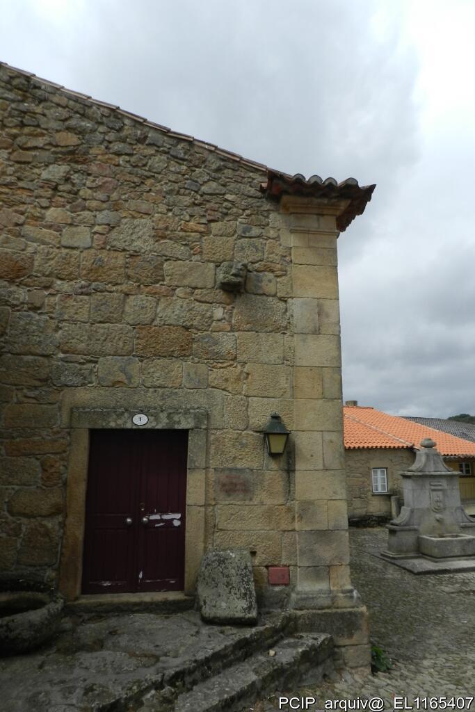 Vista parcial de casa em pedra e fontanário