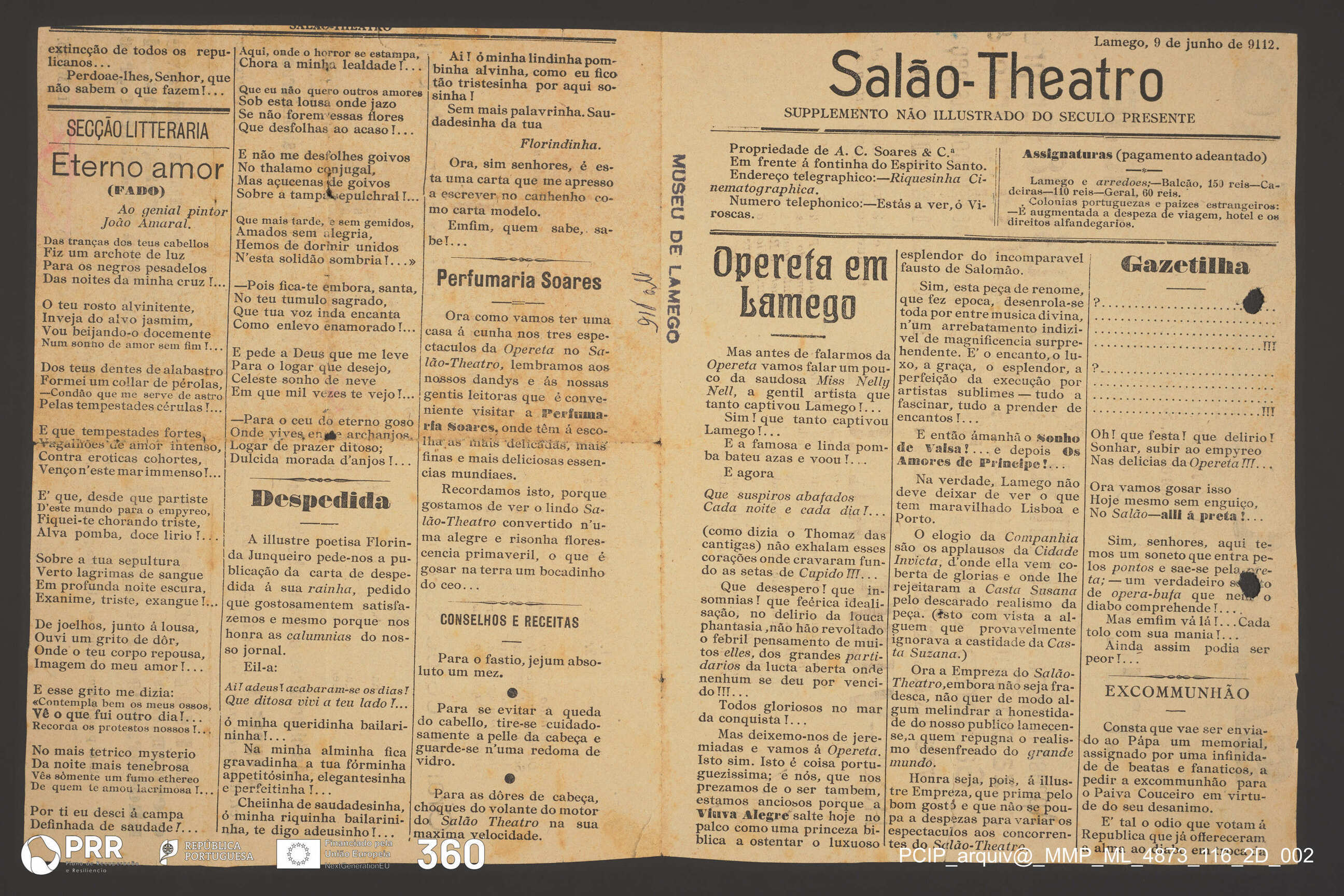 Matéria/Técnica: Impressão; Cronologia: 1912; Autoria: Desconhecida; Dimensões (cm): Altura: 36,2 x Comprimento: 24.