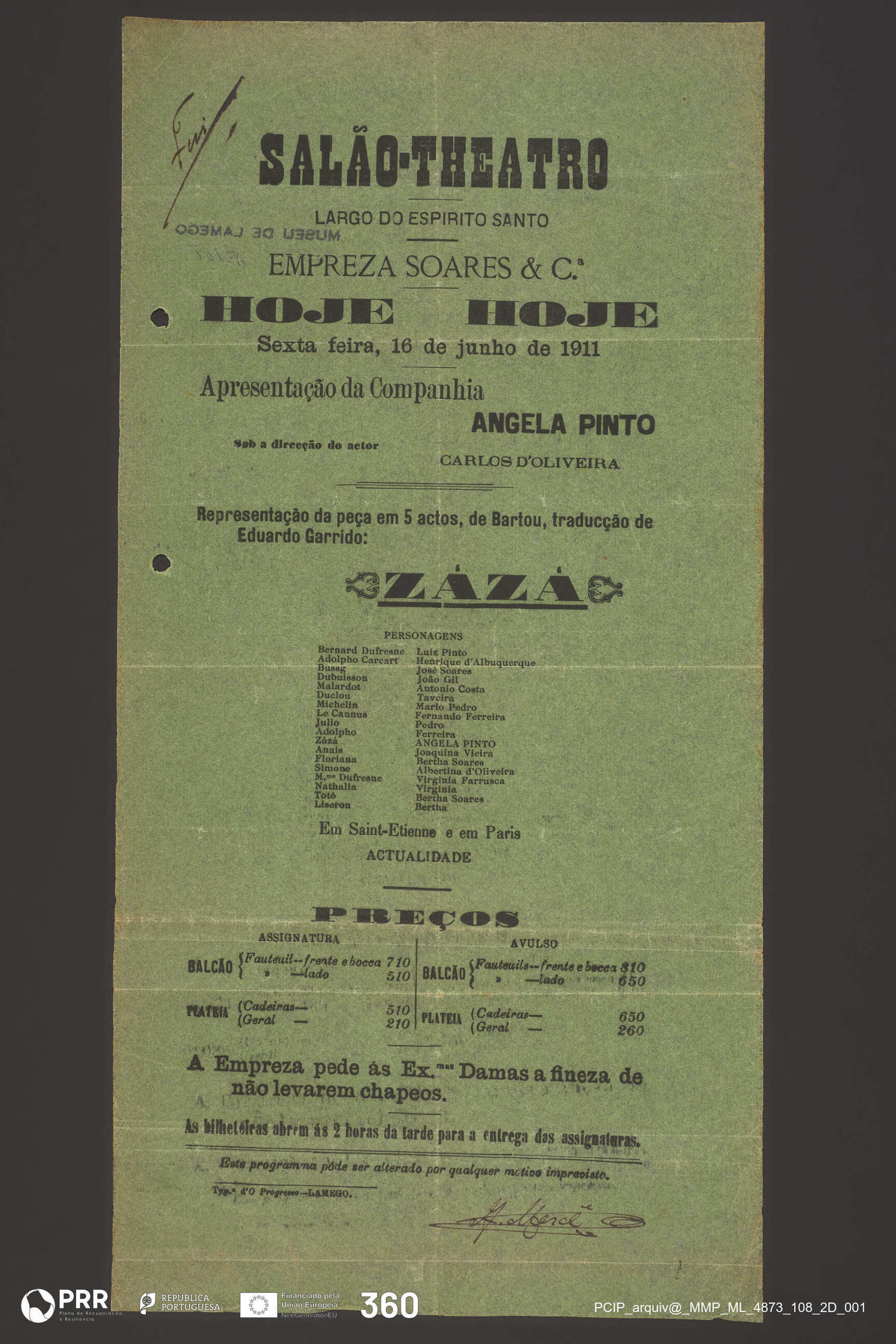 Matéria/Técnica: Impressão; Cronologia: 1911; Autoria: Desconhecida; Dimensões (cm): Altura: 42,5 x Comprimento: 21,3.