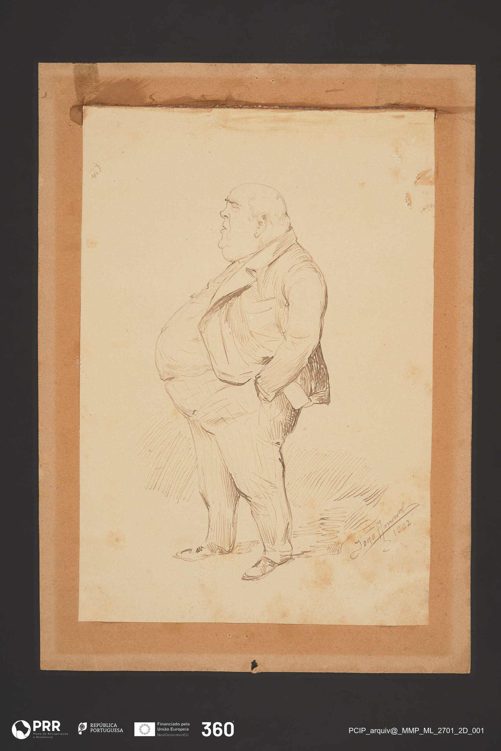 Matéria/Técnica: Desenho à pena; Cronologia: 1902; Autoria: Amaral, João (1874 - 1955); Dimensões (cm): Altura: 25 x Largura: 17,1.
