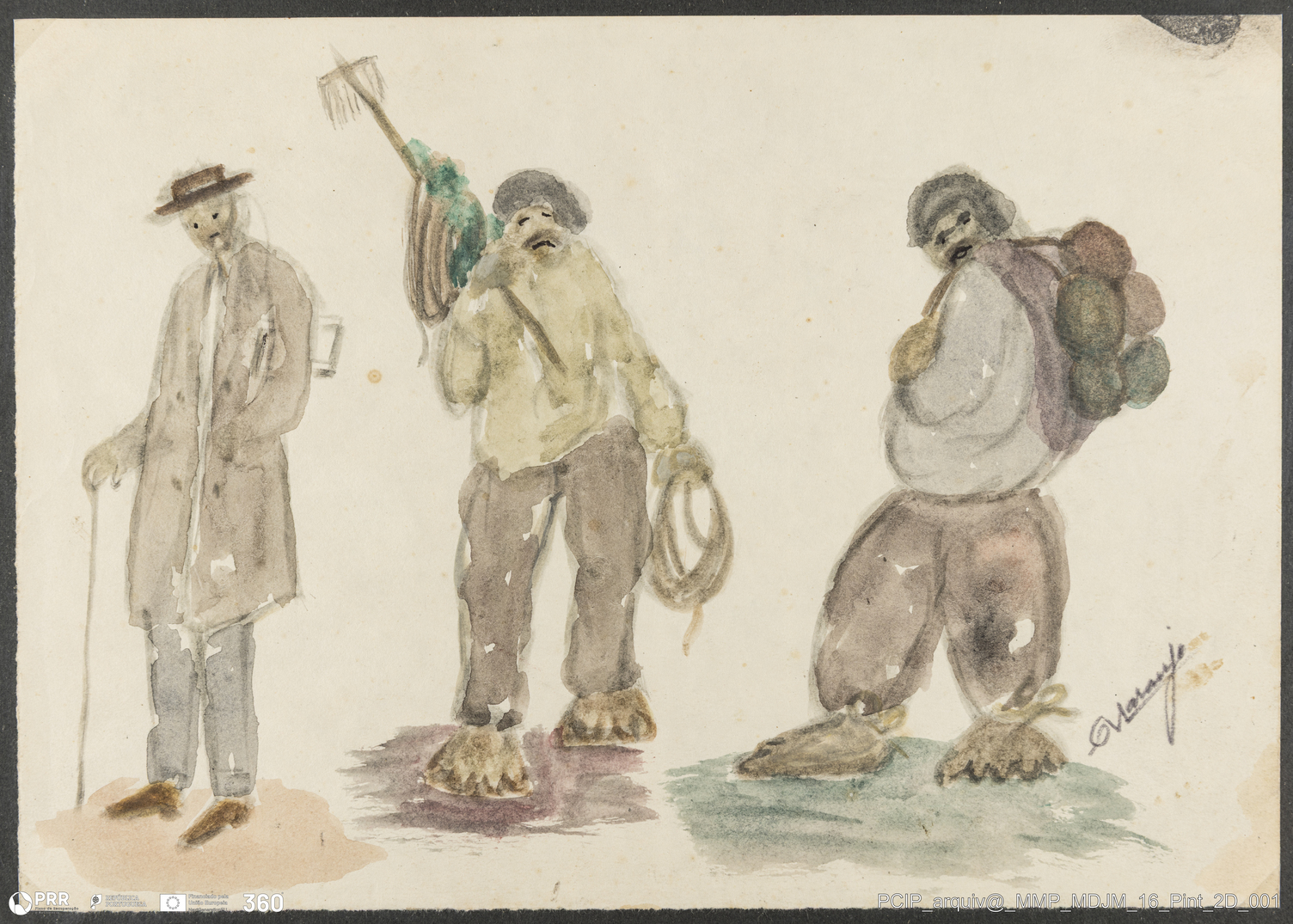 Matéria/Técnica: Aguarela sobre papel; Cronologia: Séc. XX; Autoria: Antonio Vitorino Laranjo; Dimensões: Altura: 30.6 cm x Largura: 21,6 cm.