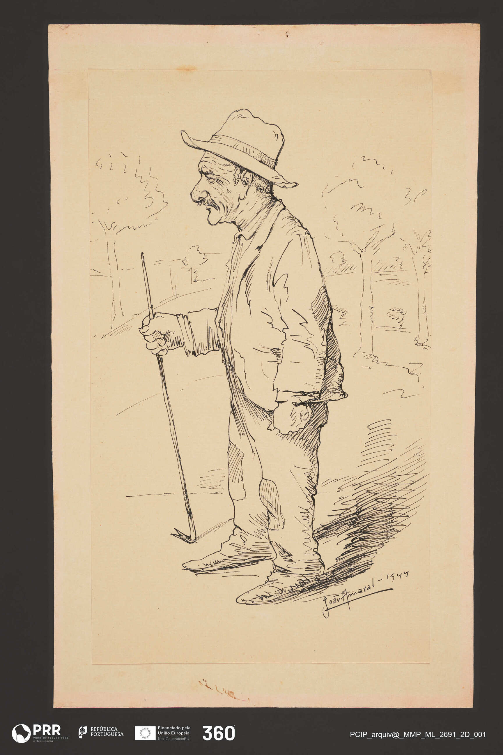 Matéria/Técnica: Desenho à pena; Cronologia: 1944; Autoria: Amaral, João (1874 - 1955); Dimensões (cm): Altura: 26,2 x Largura: 15.